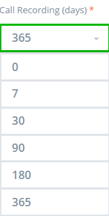 Except for Call Recording and Encrypted Calls, all fields support a maximum of 4 digits (maximum = 9999).