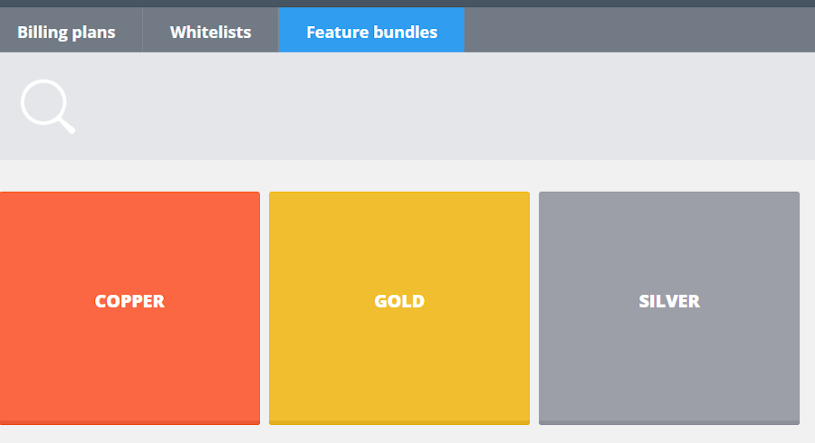 Providers and Resellers can create, view, edit, and delete Feature Bundles via the Billing tab in the Provider or Reseller panel.