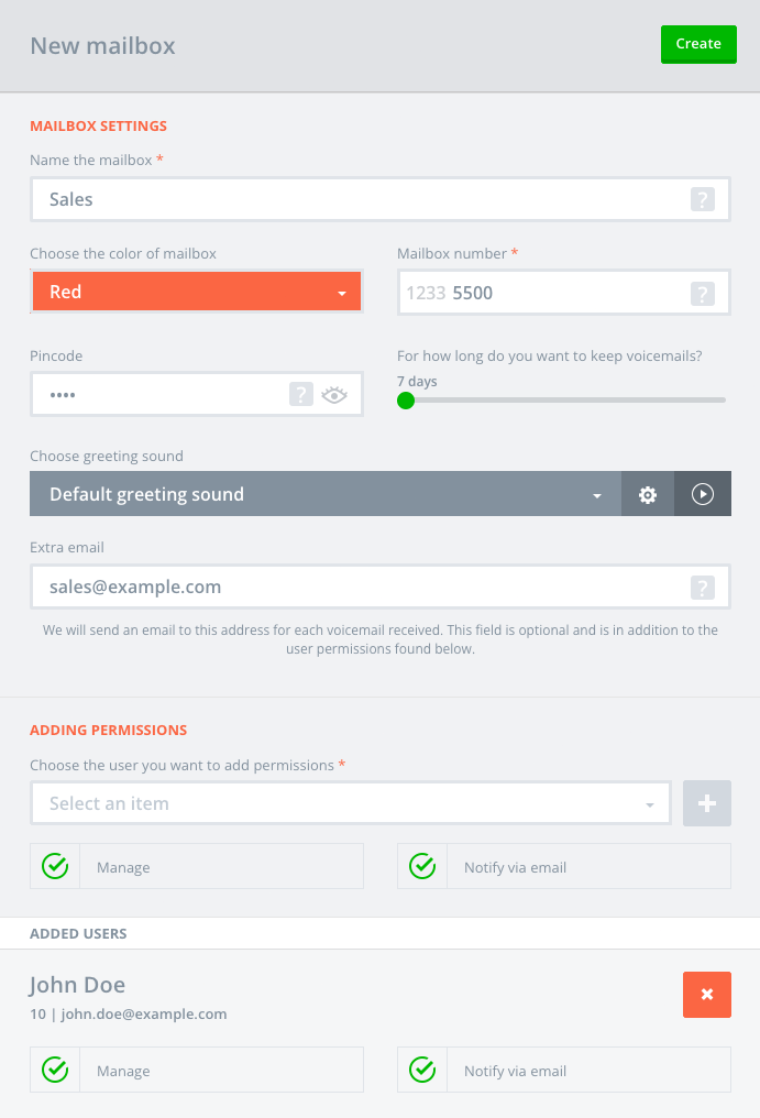 Give your mailbox a clear and descriptive name (e.g., Sales Voicemail or Support Mailbox).Mailbox number: